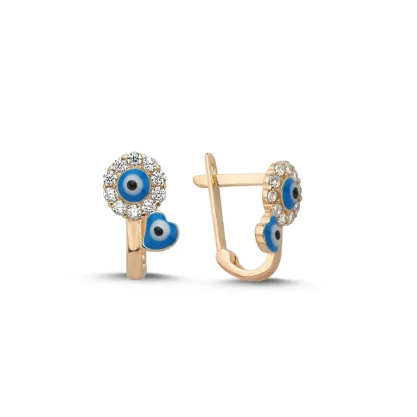 Güler Gold Kalpli Nazar Boncuğu Çocuk Küpesi