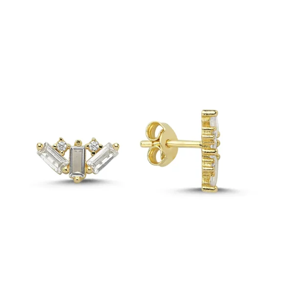 Güler Gold Işık Üçgeni Taşlı Küpe