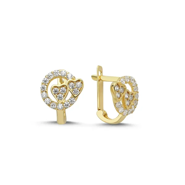 Güler Gold Taşlı Çift Kalp Figürlü Çocuk Küpesi