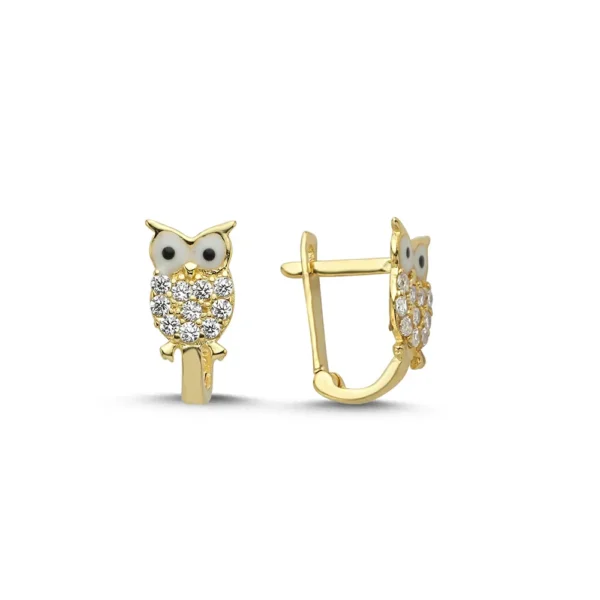 Güler Gold Taş İşlemeli Baykuş Figürlü Altın Çocuk Küpesi