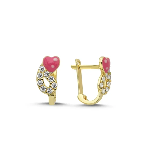 Pembe Kalpli Taşlı Altın Çocuk Küpesi