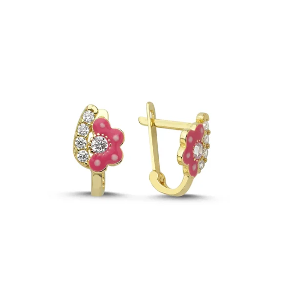 Pembe Çiçek Figürlü Altın Çocuk Küpesi