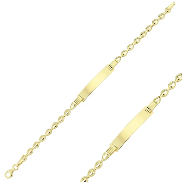 Oval Baklalı Zincirli Altın Çocuk Künyesi