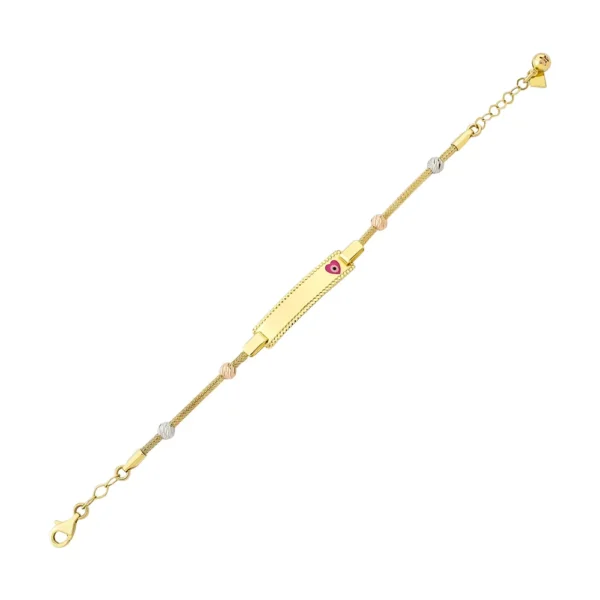 Pembe Nazarlıklı Üç Renk Altın Zincirli Bebek Künyesi