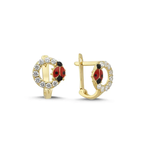 Uğur Böcekli Taşlı Altın Çocuk Küpesi