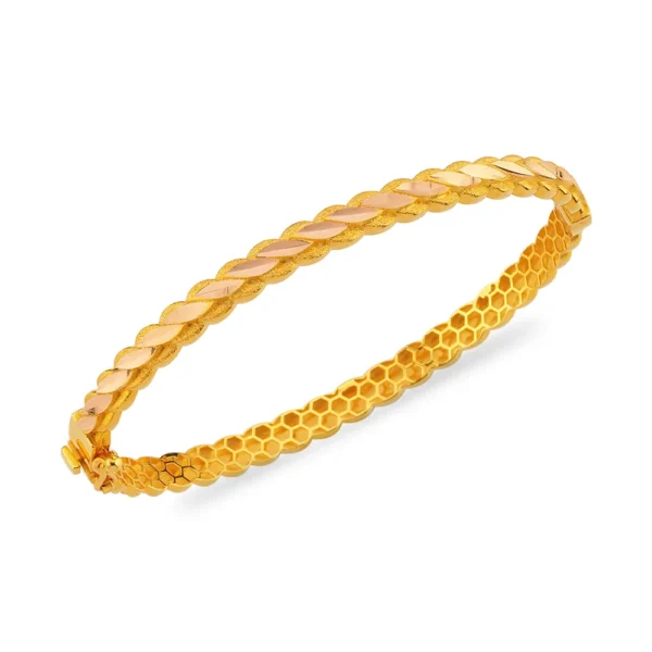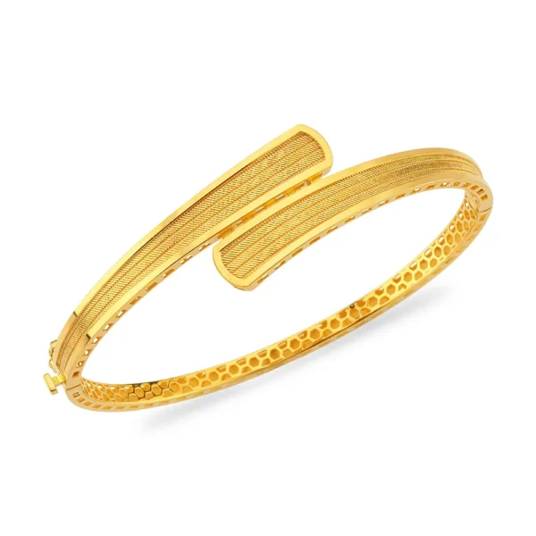 Modern tasarımı ve yarım formlu yapısıyla dikkat çeken altın bilezik, zarafetiyle bileğinizde şıklığı yansıtır.
