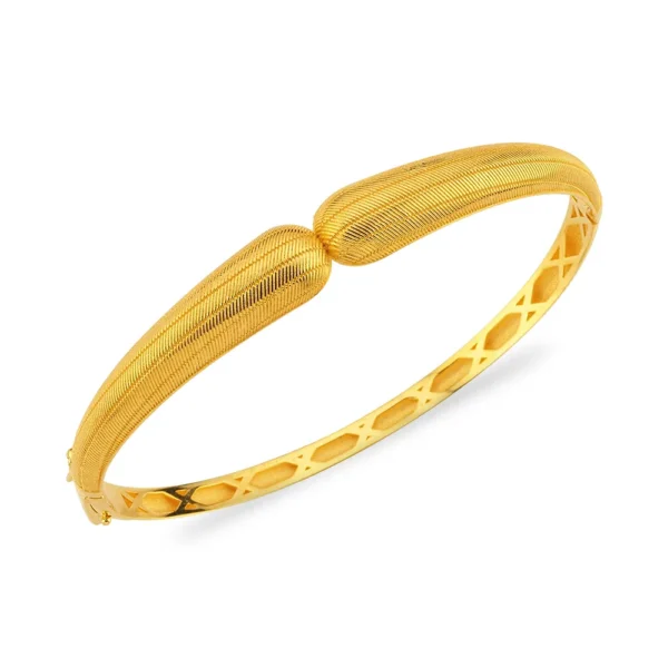 Zarafetin klasik yorumunu yansıtan üçlü burma kelepçeli altın bilezik, 14 ayar altın yapısıyla şıklığınızı tamamlar.