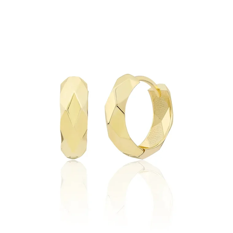 Facet kesimli yüzeyiyle minik kulaklarda zarif bir ışıltı ve şıklık sunan 14 ayar yeşil altın küpe.